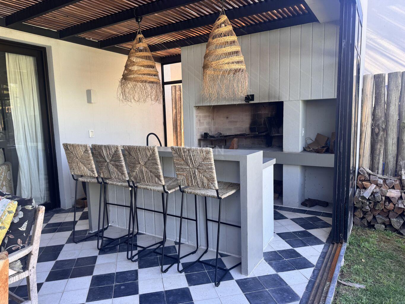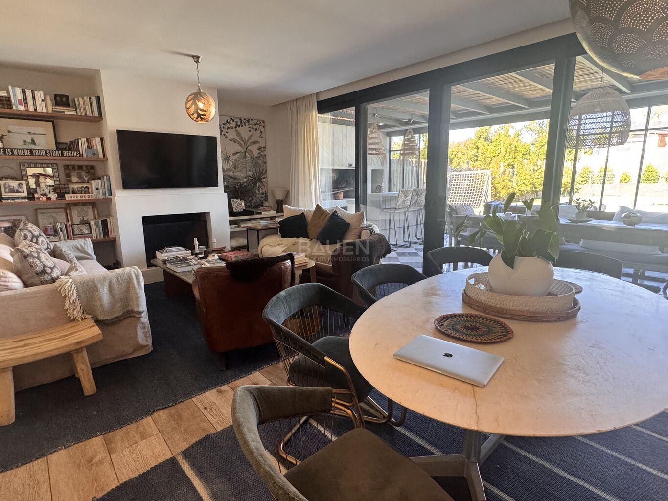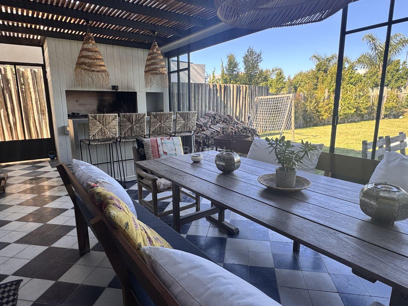 Living–comedor con estufa a leña tradicional, integrado al parrillero cerrado, ideal para disfrutar todo el año.