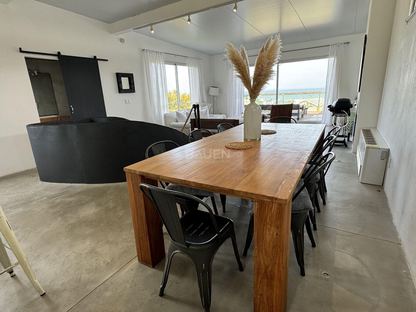 Esta espectacular propiedad ofrece una experiencia de vida excepcional a solo 3 cuadras de la ruta 10 con vistas impresionantes al mar. La construcción sólida y tradicional de dos plantas se complementa con una distribución estratégica y un diseño elegante que garantiza comodidad y funcionalidad.La planta baja consta de tres amplios dormitorios en suite, cada uno de los cuales está iluminado con una abundante luz natural y cuenta con terminaciones de alta calidad. Cada dormitorio ofrece una experiencia privada y cómoda para los huéspedes y es perfecto para una familia grande o grupos de amigos que buscan disfrutar de unas vacaciones juntos.